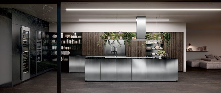 מטבח שמשלב מודרניות ומסורת שבאה לידי ביטוי בעיצוב קלאסי על- זמני. הטונים החמים של המטבח ושטח העבודה הגדול מעוצב מתוך מחשבה על החיים המודרנים- איחוד חלל הסלון והמגורים יחד עם המטבח.