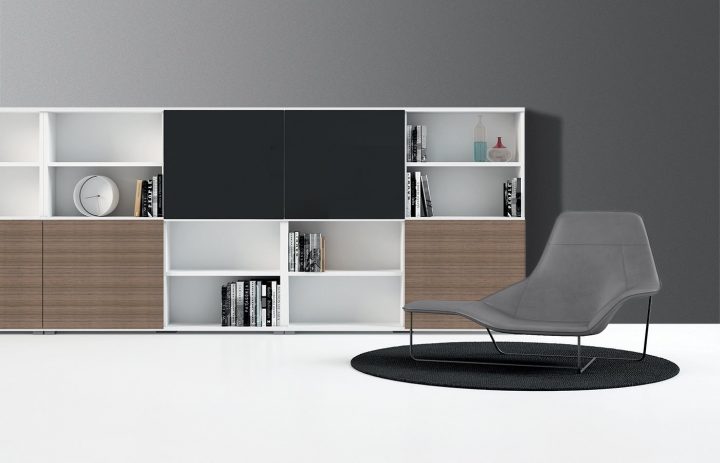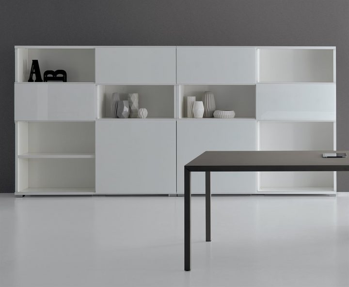 ספריה מודולרית ניתנת להזמנה במגוון צבעים, גימורים, צורות וקומבינציות בהתאם לצרכים העיצובים והפונקציונאלים. לספריה מכניזם של סגירה שקטה הבנויה על מסילות ברמת איכות הגבוה ביותר.