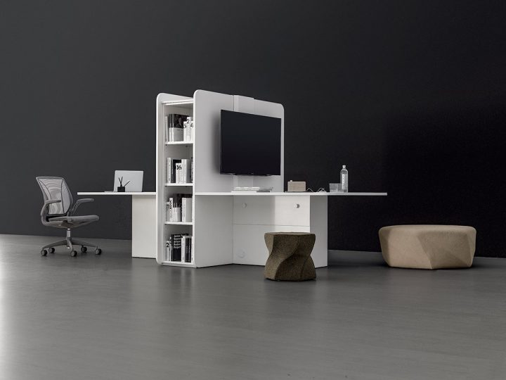 עמדת עבודה מודולרית בעיצוב טרדני, מודרני שמשדר פשטות מתוחכמת וניקיון. מגוון אפשרויות להתאמה אישית- פונקציונלית ועיצובית.