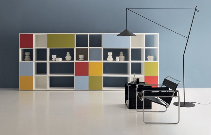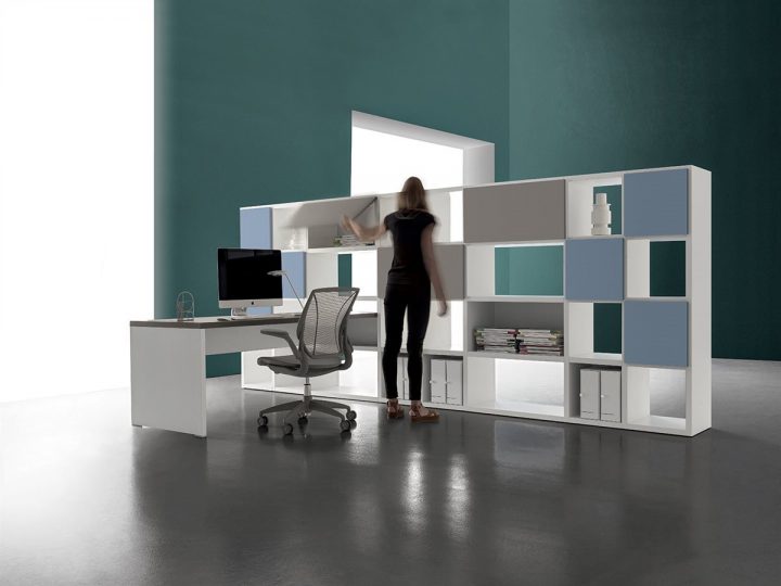 ספרייה מודולרית שניתן להתקנה על הקיר או באמצע החדר. מגוון רחב של אפשרות שילוב צבעים בין גוף, דלתות ופאנלים אחוריים בגימורים השונים והתאמה אישית לחלל המשרד או בית.