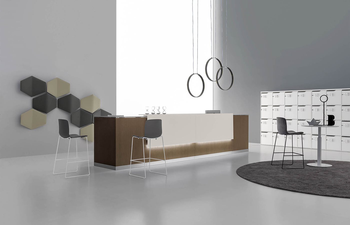 מינימליזם ועיצוב נקי – קולקציה זו מציגה פתרון דלפק קבלה מודולרי. היא מאופיינת במודולים הפשוטים שלה ומעניקה קבלת תמונה רעננה ודינמית.