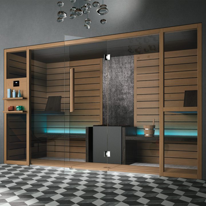 סאונה בסגנון פיני המשלבת זכוכית אלגנטית, עבה ועמידה לחום עם עבודת עץ מסורתית. הסאונה מוארת על ידי נורות לד הממקומות מעל למושבים ומאובזרת בשני רמקולים הניתנים לשליטה בבלוטות'. ניתן לשלוט בטמפרטורה וההגדרות דרך ממשק השליטה הדיגיטלי לנוחות מרבית וחווית סאונה מושלמת.