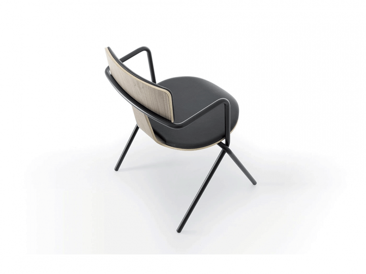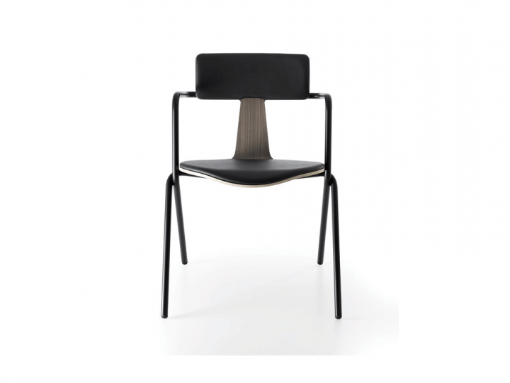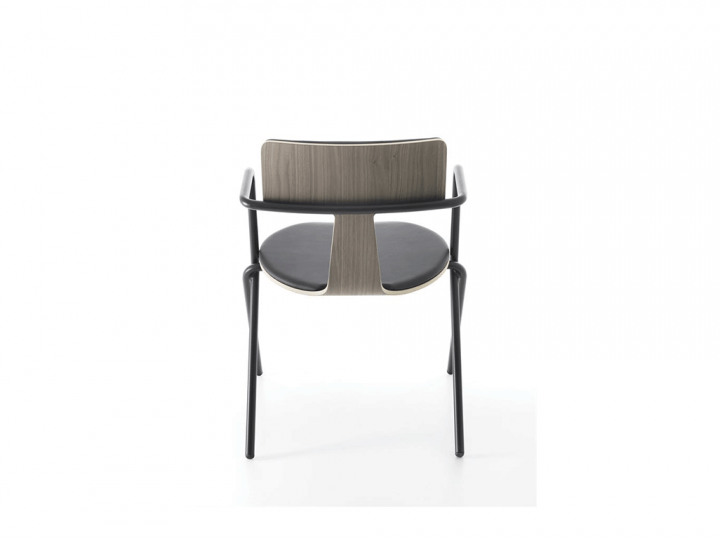 מתוך קולקציית הכיסאות החדשה בעיצובו של אנזו ברטי- שילוב אלמנטים מסורתיים עם אלמנטים מסרותיים. הכיסא מורכב משילוב שני מבנים מתכתיים המשולבים אחד בשני ומהווים תמיכה ומסגרת לעבודת העץ המגולפת בכיסא. התוצאה היא מבנה של כיסא קליל במיוחד בעל עיצוב נקי ומובהק וצורת T בגב הכיסא. הכיסא זמין בשלושה גימורים שונים: עץ, מתכת, או ריפוד בד/ עור.