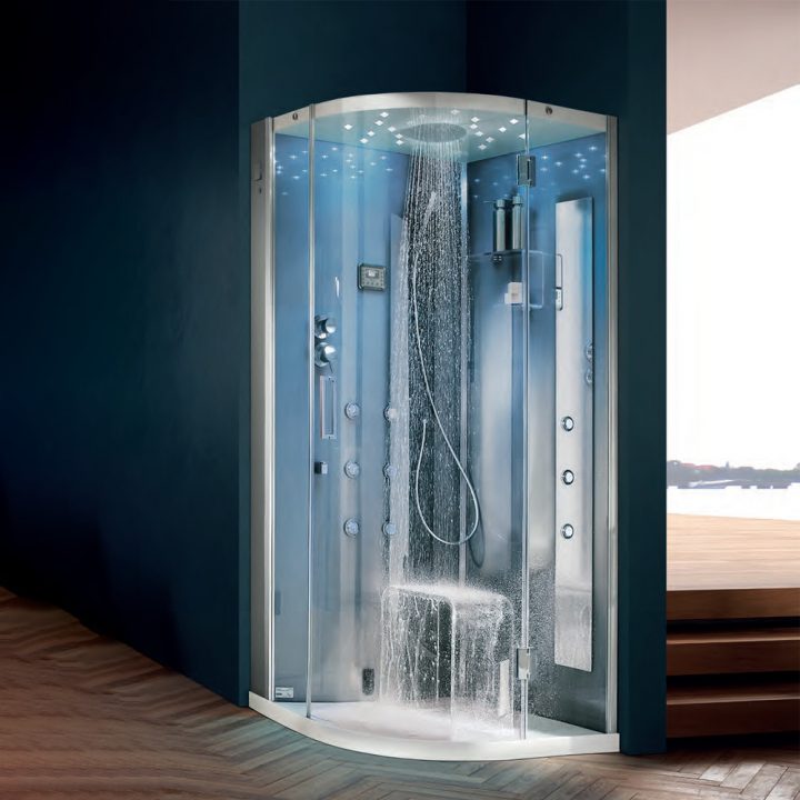 עיצוב בולט מודרני משלב נוחות וטכנולוגיה. מקלחת שהיא גם יכולה להפוך לחמאם טורקי כוללת מתקן אדים עם ארומתרפיה ופיטותרפיה עוצבה עם תאורת לד, ניהול דיגיטלי ורמקולים לרדיו/מוזיקה המספקים נוחות מרבית וחוויה מושלמת לרגיעה או רעננות.